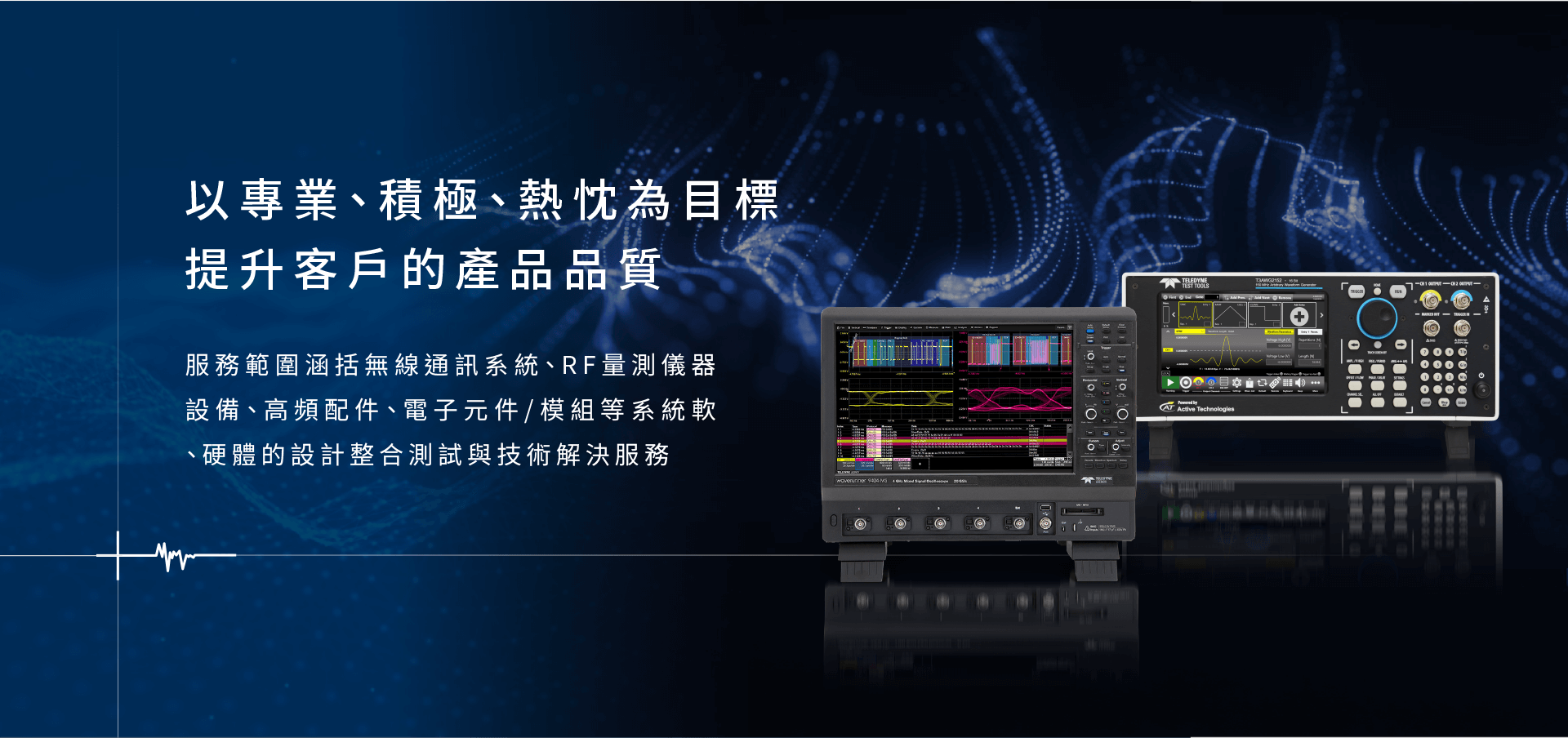 瀚誼科技致力於提供示波器多元化的專業測試和解決方案,範圍涵括無線通訊系統、RF量測儀器設備、高頻配件、電子元件/模組等系統軟、硬體的設計整合測試與技術解決服務,以專業、積極、熱忱為目標,提升客戶的產品品質,增進產能,達成符合且超越客戶所期望的產品與服務。